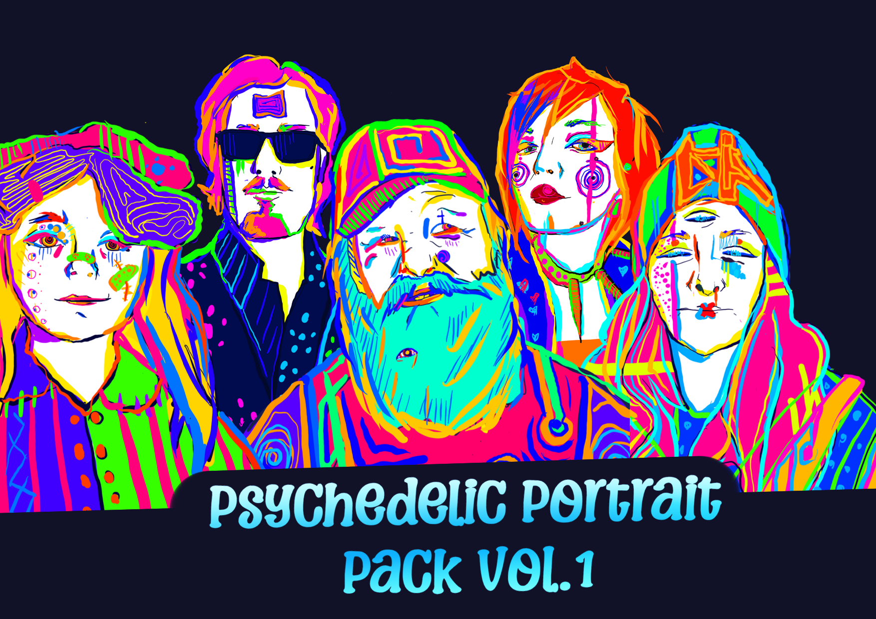 Psychedelic Portrait Pack Vol.1 – 12 Neon Characters + Frames & Backgrounds
